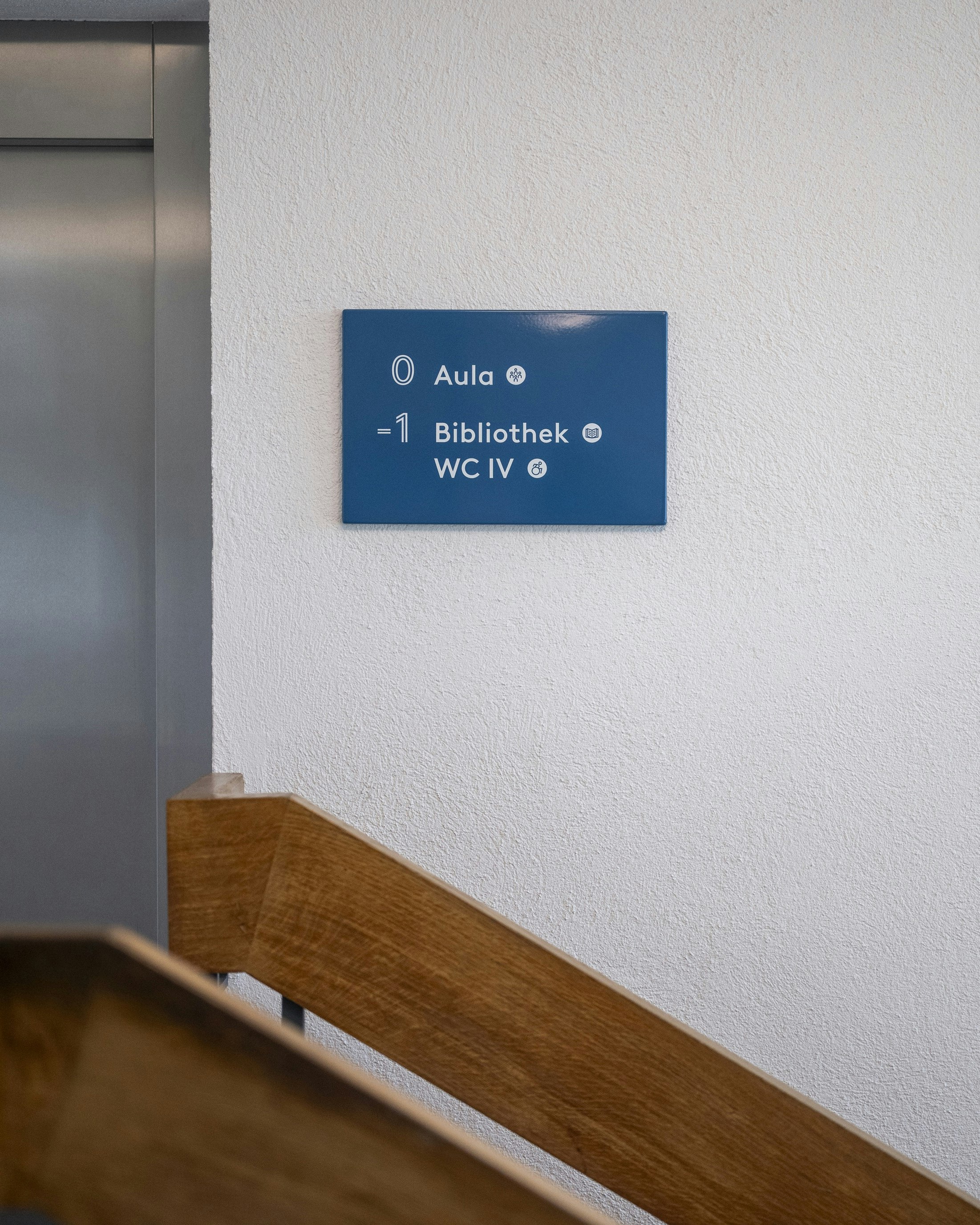 Für den Schulstandort Wasserstelzen in Riehen hat das Studio von Aarburg eine altersgerechte Signaletik entwickelt, welche einen Bezug zur charaktervollen Architektur aus den 1960er Jahren von Burckhardt Architekten aufbaut.