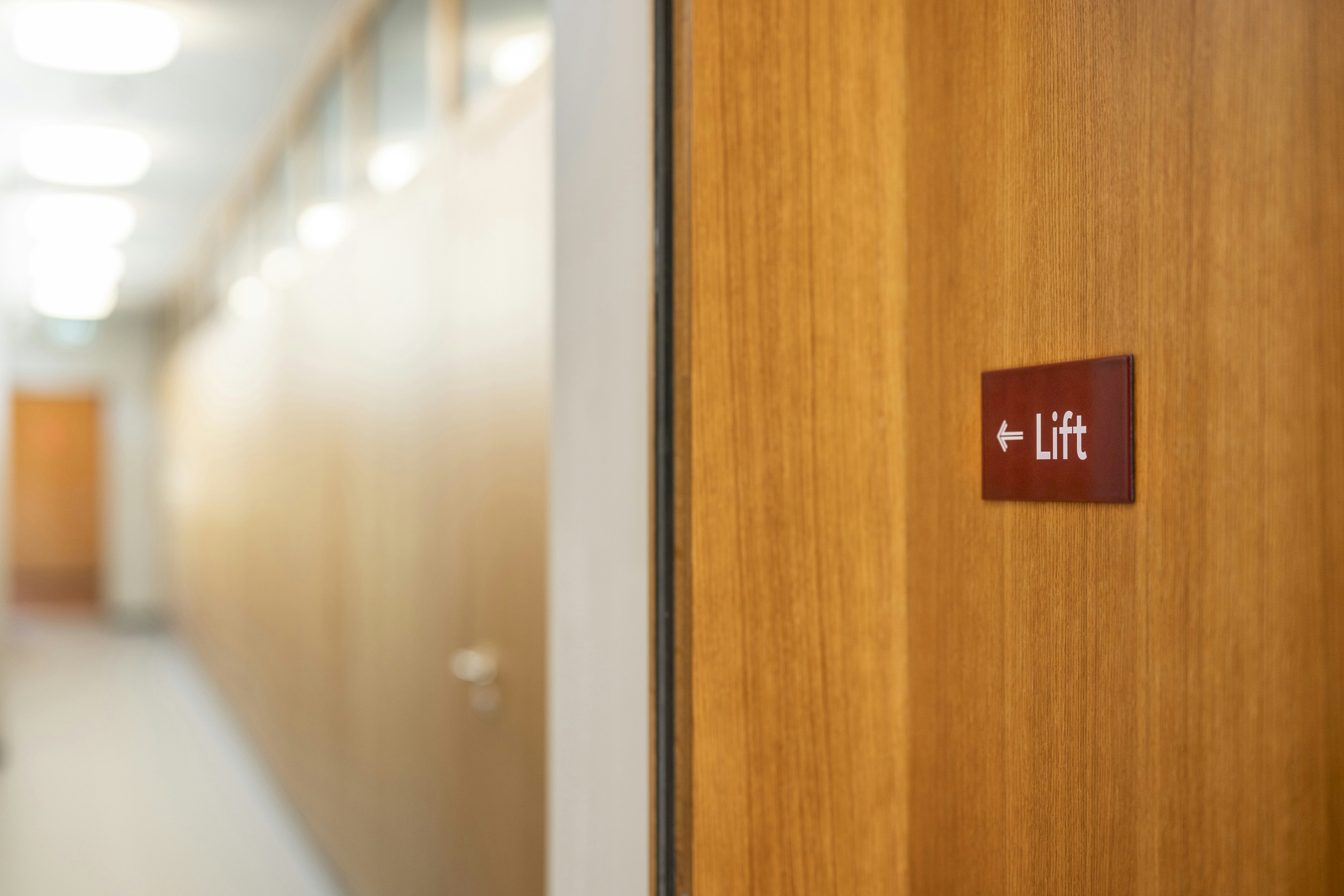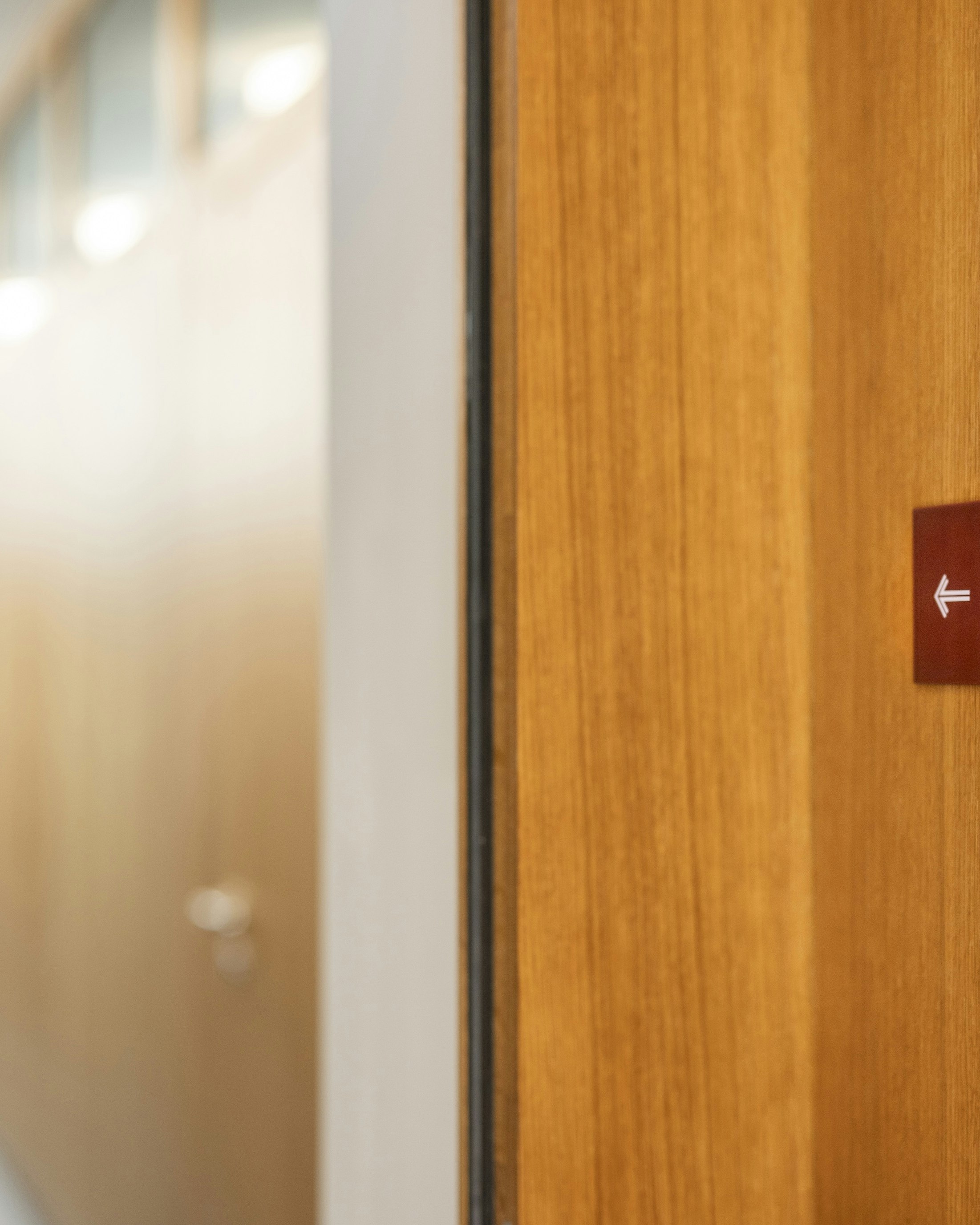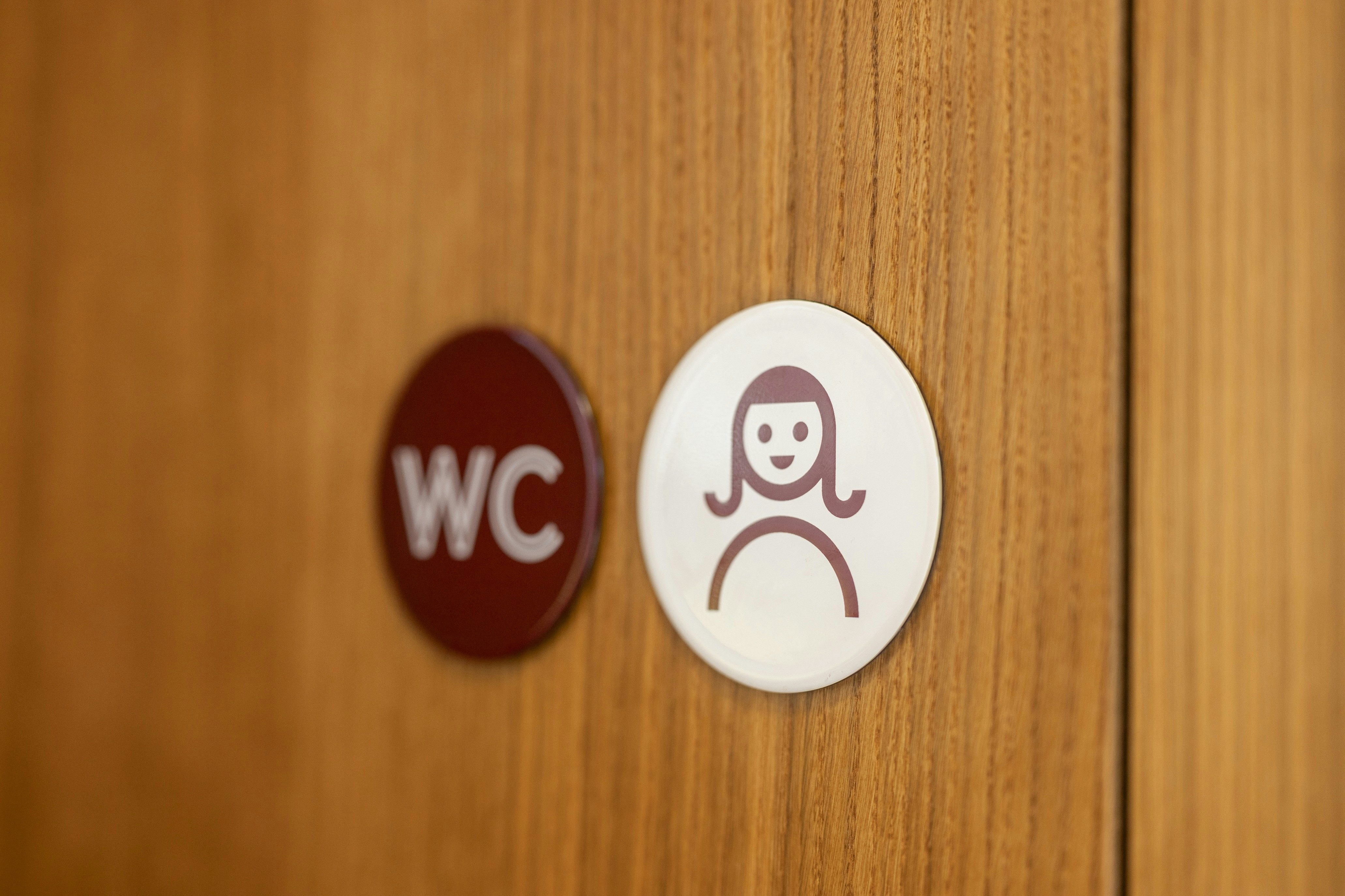 Emaillierte Piktogramme stellen eine sprachunabhängige und altersgerechte Orientierungshilfe für die verschiedenen Nutzungen dar. Emaillierte Schilder und Ziffern ergänzen die Piktogramme für die allgemeine Gebäudeorientierung auf den Stockwerken.